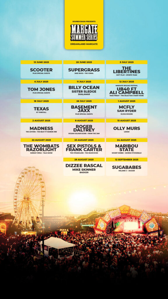 Rob Waller of Soundcrash said: “We are beyond excited to bring the biggest and most diverse Margate Summer Series yet to Dreamland in 2025. Margate has become a go-to destination for live music, and we can’t wait to welcome fans for what will be a truly spectacular summer of entertainment.”